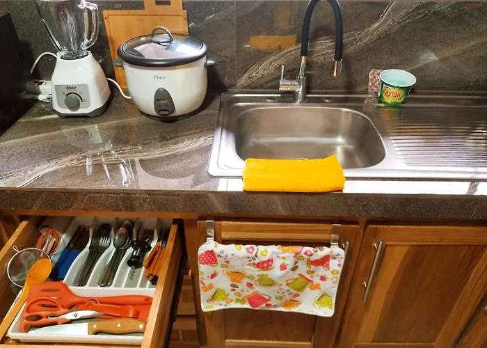 يمكن للضيوف تناول الطعام في المطبخ المجهز بالكامل، فضلاً عن منطقة لتناول الطعام في الهواء الطلق المقدمة في هذه الفيلا. هناك أيضًا الغلاية الكهربائية والبرَّاد وأدوات المطبخ لإعداد وجبتك الخاصة. أقرب محطة للحافلات هي Parada de Autobus، ليس بعيدا عن مكان الإقامة في La Fortuna.
